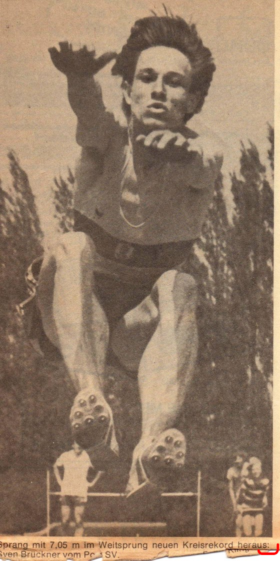 Sven Brückner sprang mit 7,05m Kreisrekord bei den Bezirksmeisterschaften Heide am 15. Mai 1983 in Celle
